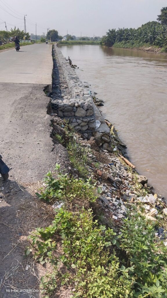 Berdasarkan hasil pengamatan jurnalis Panggung Modus Operandi di lapangan pada tanggal 8 Mei 2024, ditemukan adanya kerusakan berupa longsor pada tebing di dekat pintu air irigasi Kanal Porong. Longsoran tanah terjadi ke arah saluran air yang berada di bawah kewenangan Balai Besar Wilayah Sungai (BBWS) Brantas. Kondisi ini menyebabkan struktur jalan beton di atasnya menggantung dan berpotensi membahayakan pengguna jalan.